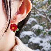 刺繍糸を丁寧に編んで制作した『ゆらゆらと揺れる赤椿のピアス/イヤリング』です。