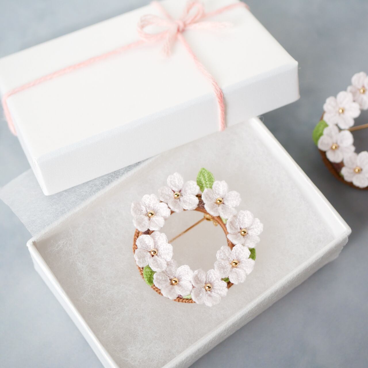 編み物 かぎ針編み レース編み 早春 春 春の花 さくら 桜 染井吉野 花 花モチーフ 花ブローチ 植物モチーフ flower 春色 ピンク パステルカラー グリーン ギフト 母の日 誕生日 敬老の日 退職祝い プレゼント ギフトラッピング 贈り物 母 祖母 娘 お出かけ 普段使い デイリー 七五三 ハレの日 謝恩会 帯留め 和小物 和モダン イベント 華やか 上品 繊細 ナチュラル ワンポイント 四季折々