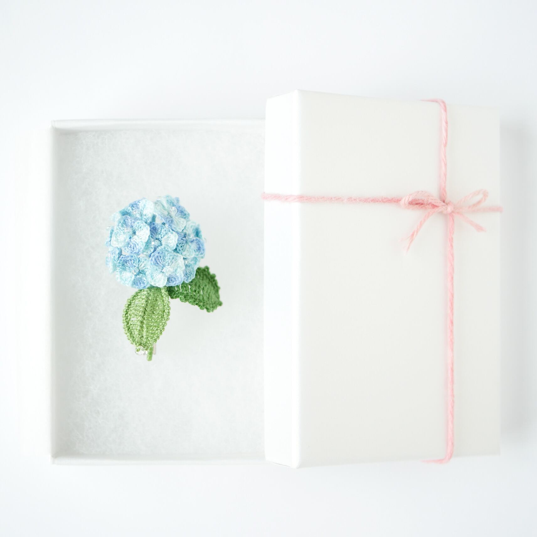 あじさいのブローチを身に付けることで、億劫になりがちな梅雨の時期のお出かけが、少しでも軽やかに楽しい時間となりますように…