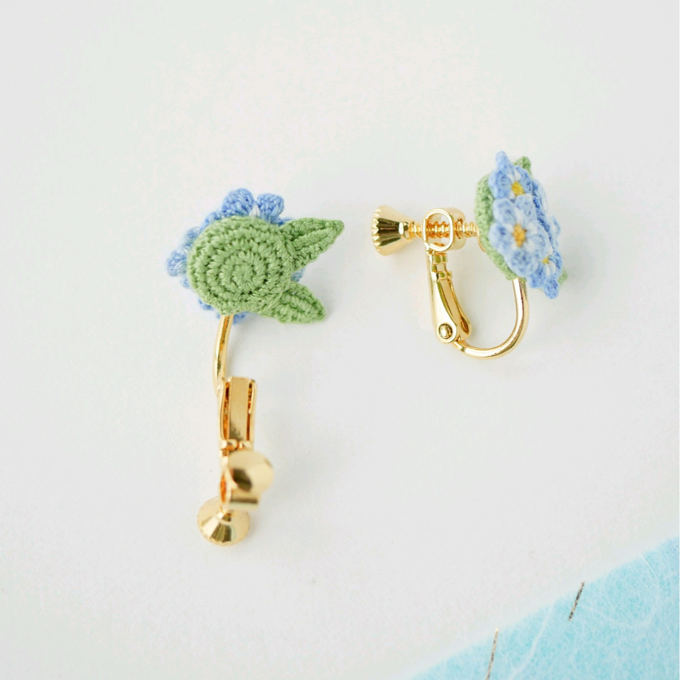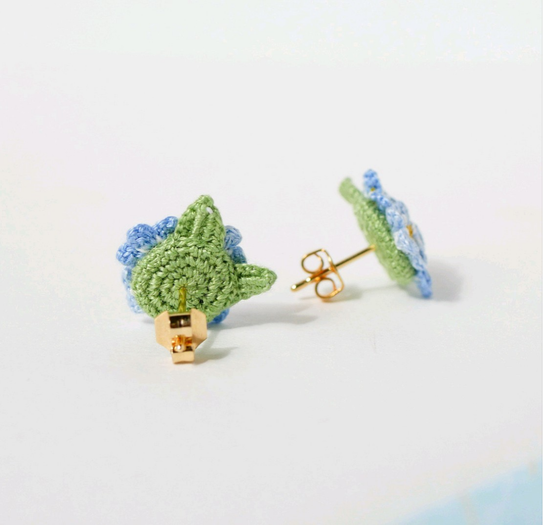 レース編みで制作した『勿忘草(わすれなぐさ)のピアス/イヤリング』です。