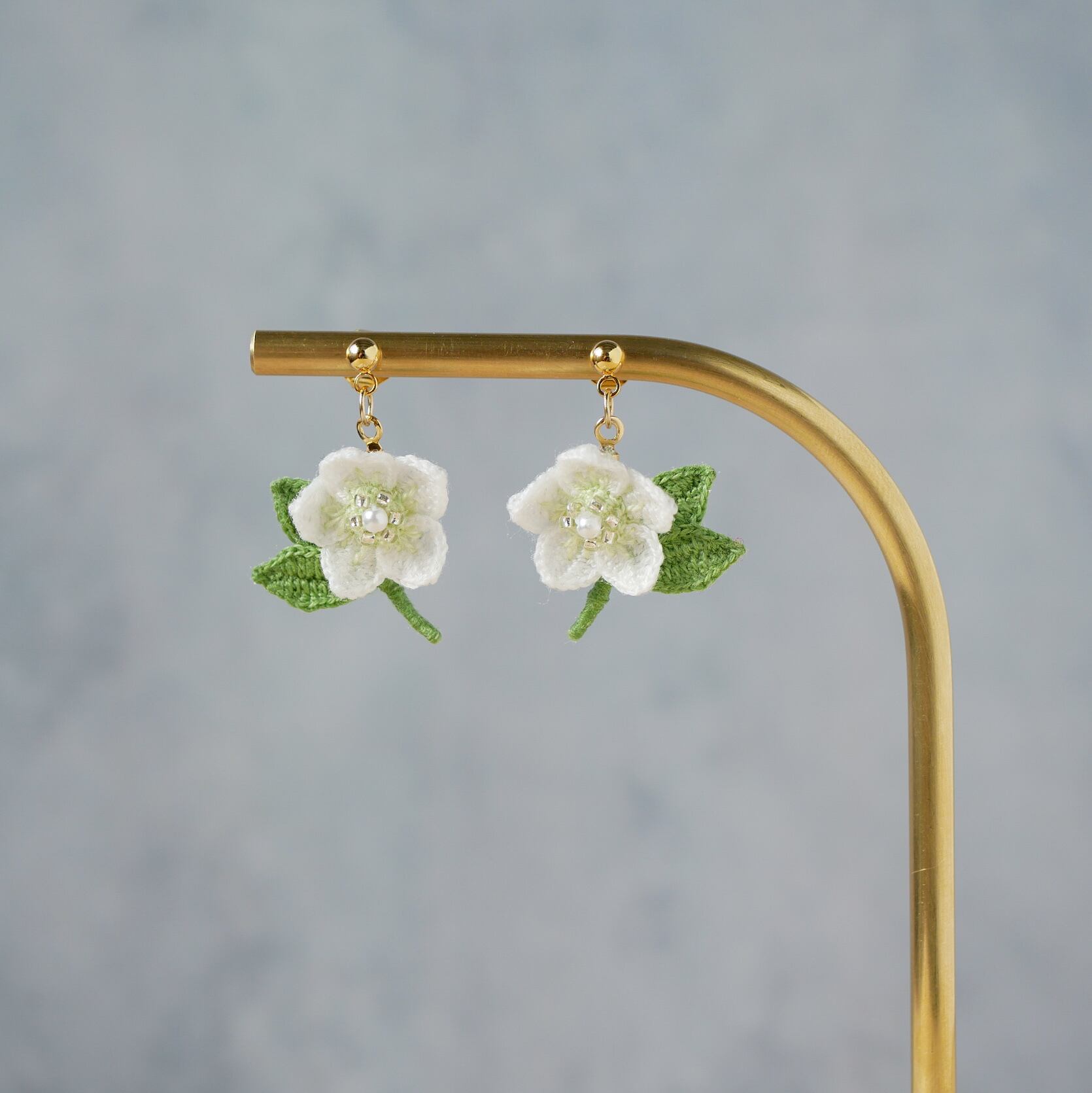 そんなクリスマスローズのお花モチーフにした耳飾りを作りました。