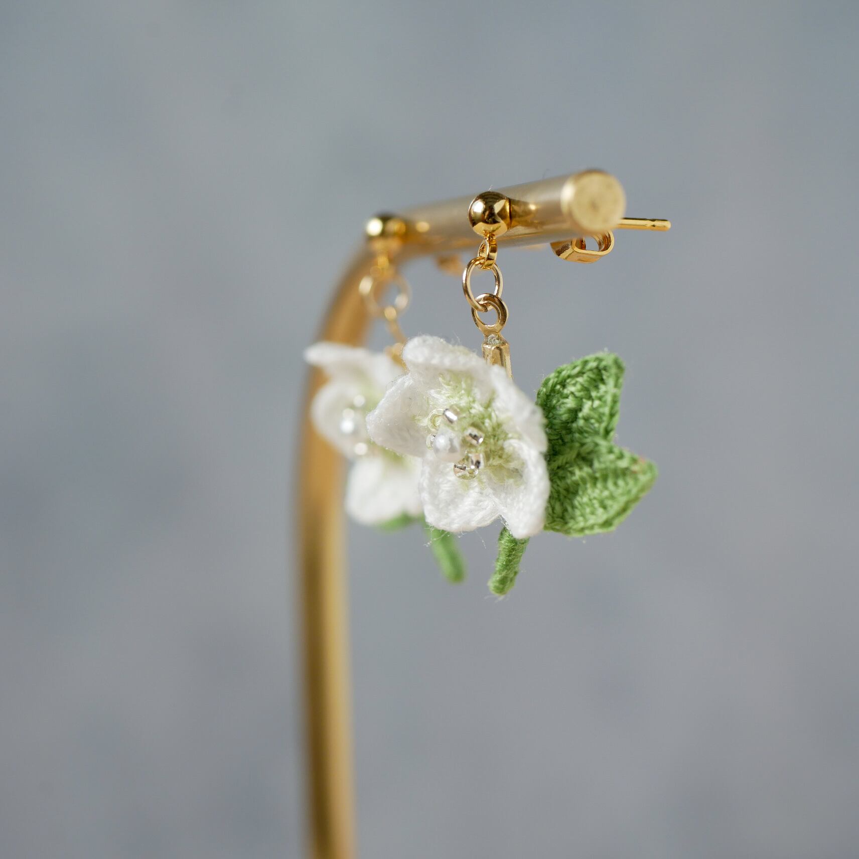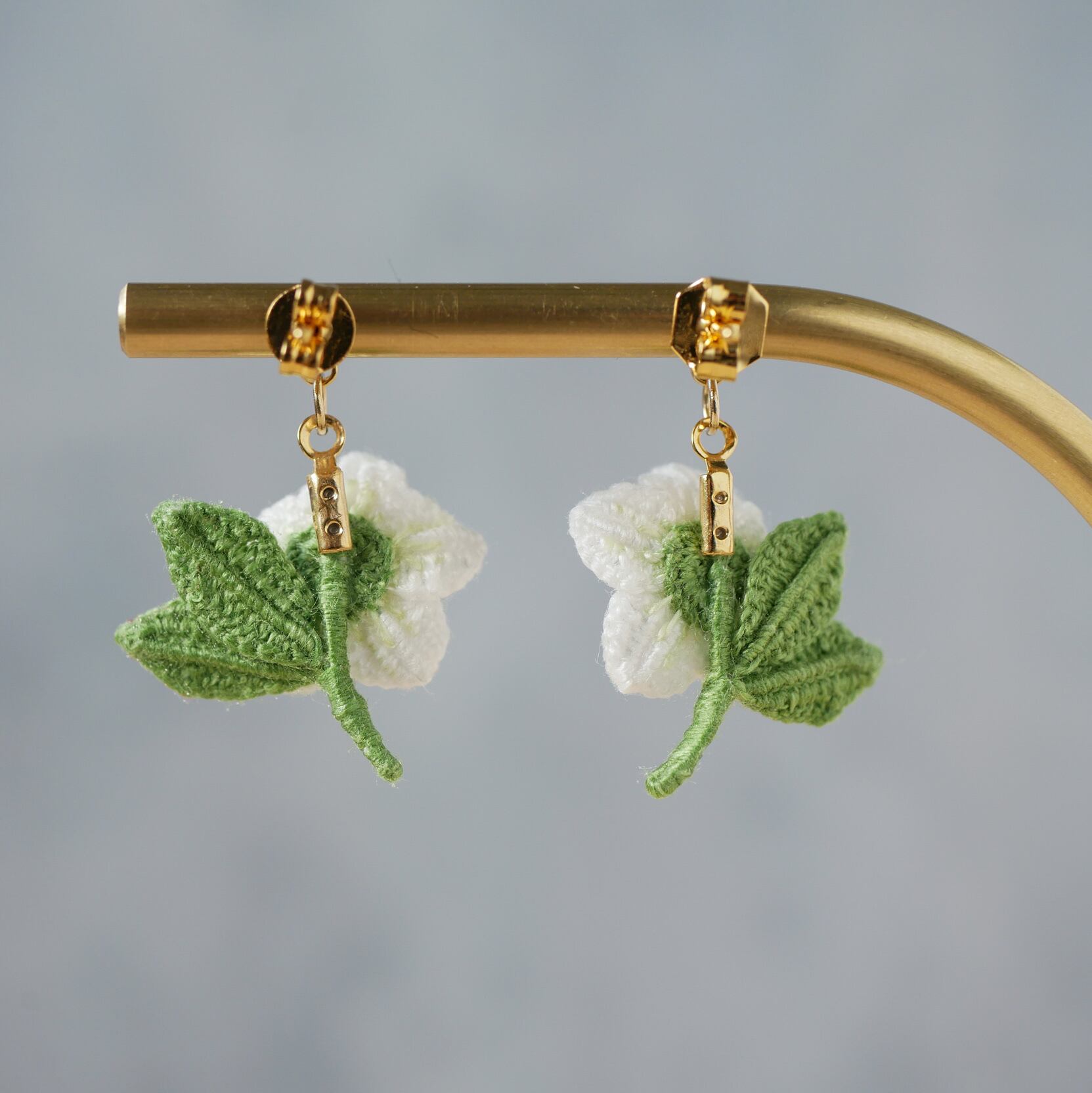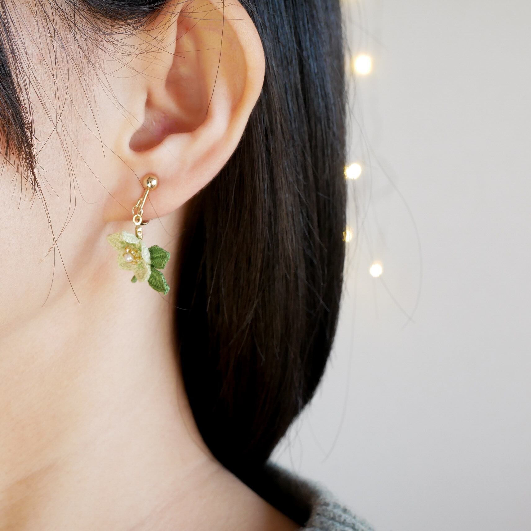 耳元で可愛らしくゆらゆら揺れるクリスマスローズのお花を身につけて、冬から春へのお出かけをお楽しみください✧*。