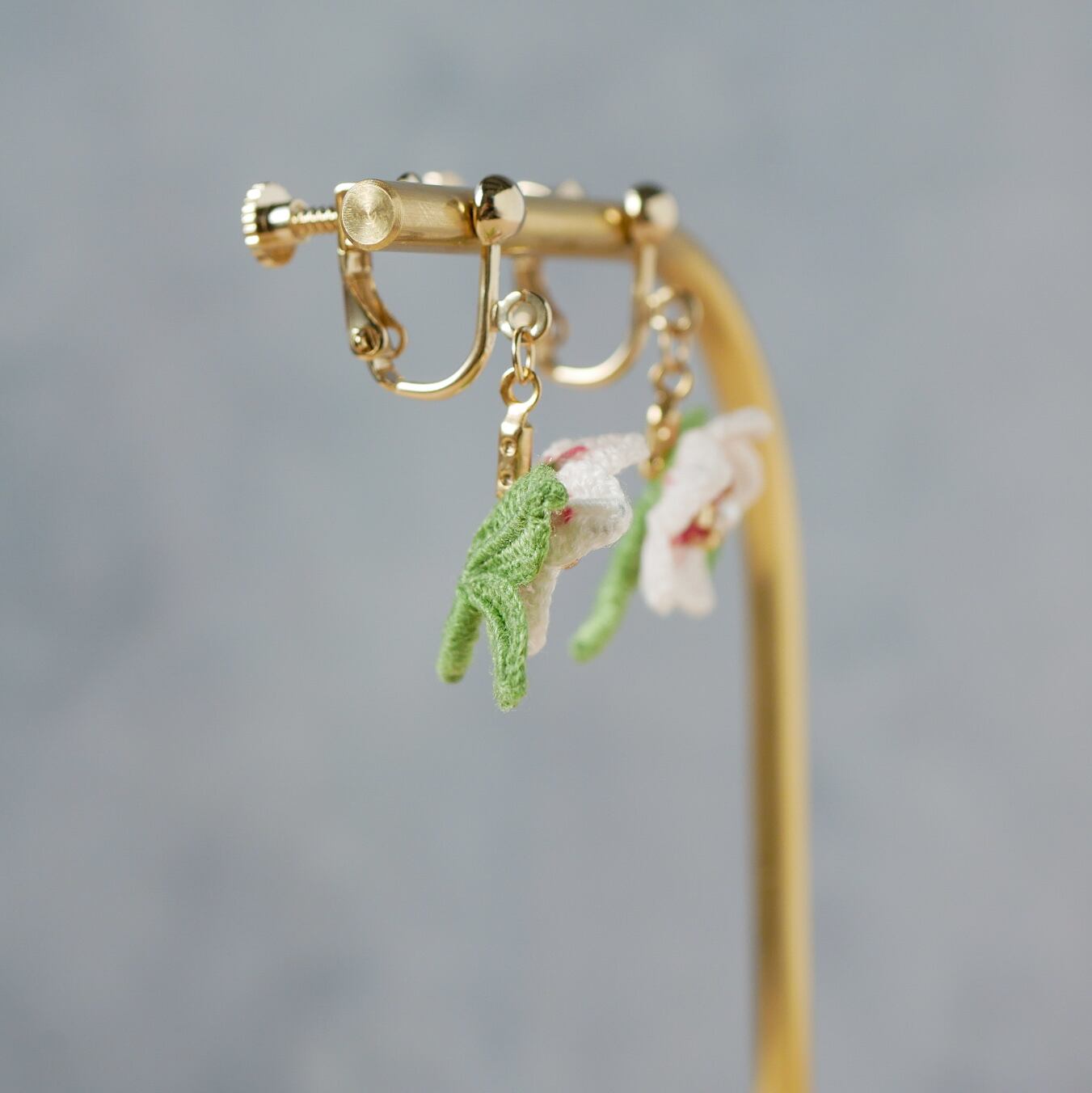 編み物 手編み レース編み かぎ針編み 刺繍 刺繍糸 ビーズ 冬 初春 春 ホワイト グリーン 薄ピンク グラデーション 花 お花モチーフ アクセサリー お花ピアス プレゼント 贈り物 ギフト 誕生日プレゼント ギフトラッピング お散歩 お出かけ 普段使い クリスマス イベント かわいい 可愛い 華やか 上品 繊細 ナチュラル 小ぶり 小さめ ワンポイント 揺れる ゆらゆら 軽量 軽い 四季折々 flower